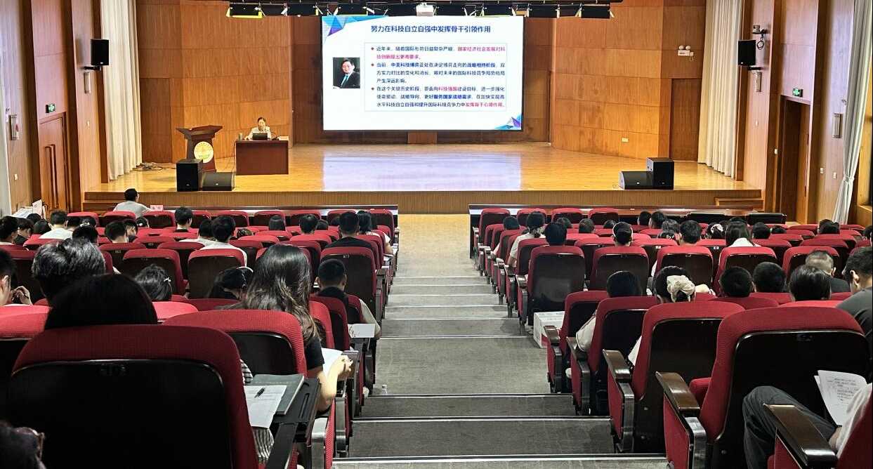 青年理论学习小组导师尚纳新做了题为《铭记历史 缅怀先烈吾辈自强》专题报告。她以纪念抗战胜利80周年为脉络,深刻回溯了中华民族14年浴血抗争的苦难与荣光。报告开篇以张伯苓1935年提出的“爱国三问”叩击心灵,通过触目惊心的历史数据展现了抗战之殇,阐述了中国共产党在全民族抗战中流砥柱的历史担当。她结合当前国际形势,深切勉励青年:每个时代的青年们,都有着每个时代不同的使命,要传承科技报国的赤子之心,走好新时期长征路,在强国建设、民族复兴征程上书写青春华章。