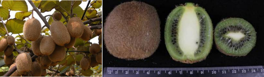 果实椭圆形,整齐,平均果重76克,果皮浅棕色,易剥离。果肉翠绿色,果心大,质细多汁,甜酸味浓,有清香,含可溶性固形物14%、有机酸1.4 %、维生素C 124 毫克/100克鲜重,质优。果实在常温下贮存15~20天(朱鸿云,2002)。果实以鲜食为主,又可作为加工原料。在武汉植物园种植,平均果重50克左右,硬果后熟需要16天,软熟(硬度0.5千克/平方厘米)果实含可溶性固形物16%、总糖10%、总酸1.5%、维生素C 53毫克/100克鲜重。