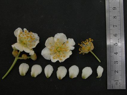 从4月中下旬开始初花,到5月上中旬结束,花期长达15~21天,比其它雄性品种花期长约7~10 天,花期可以函盖园区所有中华猕猴桃4倍体雌性品种(系)和早花的美味猕猴桃6倍体雌性品种的花期。花萼6片,花瓣6~10片,花径较大(4~4.3厘米),花药黄色,平均每朵花的花药数59.5个,每花药的平均花粉量40100粒,平均每朵花的可育花粉189.3万粒,发芽率75%。用它作授粉树可增加果实单果重量及Vc含量。