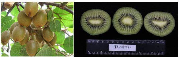 图 ‘翠玉’结果状(左)和果实切面(右)