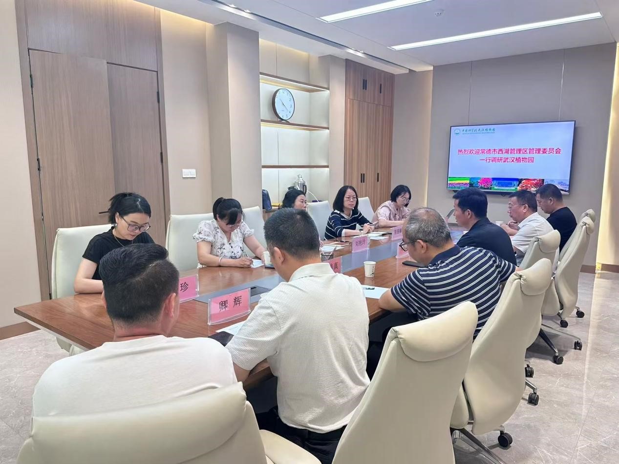 5月28日,湖南省常德市西湖管理区管理委员会党委委员、工会主任周浩,市生态环境局西湖分局局长吴思,区农业农村局副局长刘传真,区水利局副局长胡学及企业代表一行调研武汉植物园。武汉植物园综合办公室、科研处、园艺保育中心、相关学科组负责人等参加调研。
