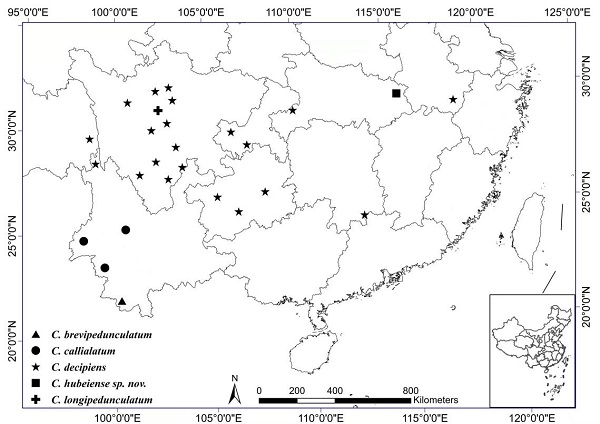 图版1:湖北豹药藤及近似种在我国的分布现状