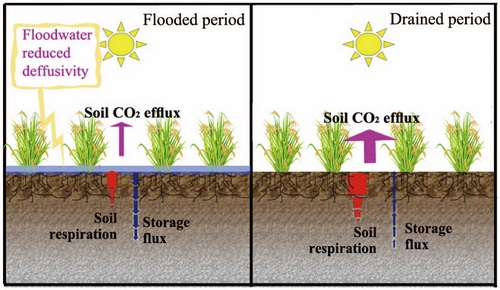 淹水和落干条件下稻田土壤CO2排放比较示意图