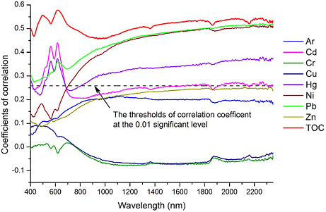 重点实验室姜庆虎在刘峰研究员的指导下,以东湖底泥的重金属污染为例,分析了高光谱技术在反演重金属As、Cd、Cr、Cu、Hg、Ni、Pb和Zn的可行性,并讨论了重金属的反演机理。结果表明,光谱模型对重金属的反演能力差异显著,其中Cd、Hg、Ni和Pb被反演性较高,而As、Cr、Cu和Zn无法被反演,这取决于重金属与TOC的内在关系与共生机制。本研究的开展为光谱快速获取高异质性土壤重金属污染信息提供了一定的参考。