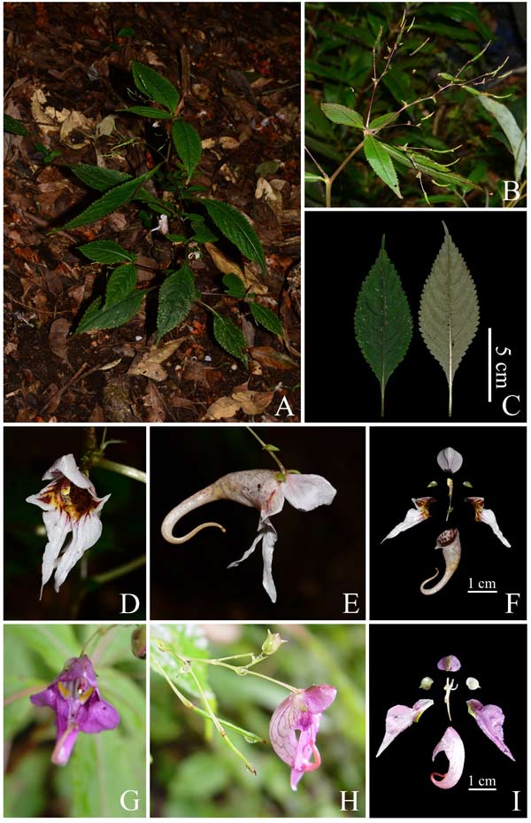 图2 隆阳凤仙花(A-F)和上江凤仙花(G-I)