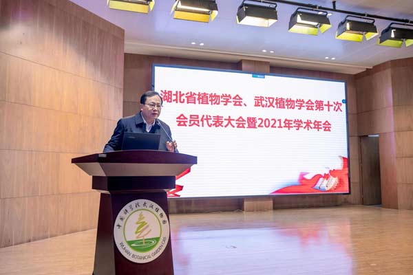 12月30日,湖北省植物学会、武汉植物学会第十次会员代表大会在武汉植物园光谷园区召开。湖北省植物学会第九届理事会理事长张全发、武汉植物学会第九届理事会理事长王青锋、湖北省植物学会和武汉植物学会第九届理事会副理事长余龙江、赵洁、黄双全,湖北省科协学会部唐利红副部长、武汉市科协学会部杜循刚部长、秦冕科长及来自武汉植物园、武汉大学、华中科技大学、华中农业大学、华中师范大学、湖北大学等会员单位代表共200余人参加会议。会议由武汉植物园科研处处长陈良主持。