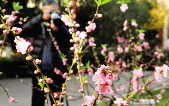 武汉植物园桃花展展出的催花桃花主要品种为“迎春”,该品种为粉红色重瓣,花朵丰腴,花姿优美。“迎春”以盆栽的形式展出 ,经过园艺师精心的修剪,树干横斜有致,不仅可以赏花还可以赏枝干,整体造型非常优美。400盆大小盆栽桃花 分列道路两边,有的含苞待放,有的开花正盛,形成了美丽的桃花大道,仿佛春天已经到来。
