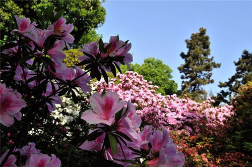 武汉植物园杜鹃园占地面积约3000平方米,收集栽培以高山杜鹃为主的杜鹃品种200余个。