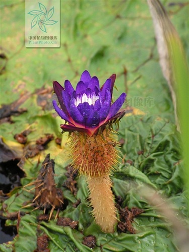 花单生,伸出水面。萼片4,披针形,绿色,密被刺,内面紫色;花瓣多数,较萼片小,紫红色,数轮排列。