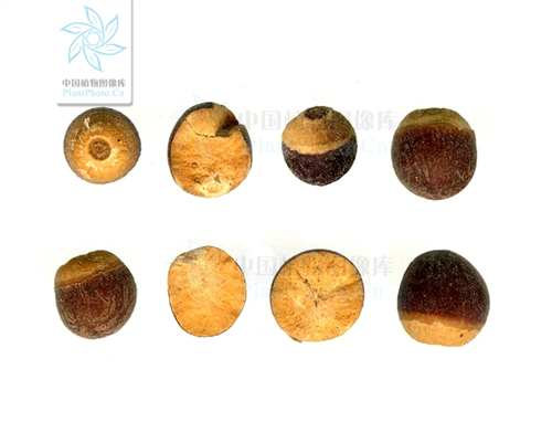 果阔椭圆形,光亮,顶部冠以圆锥形的花盘和微小宿存的萼檐裂片。