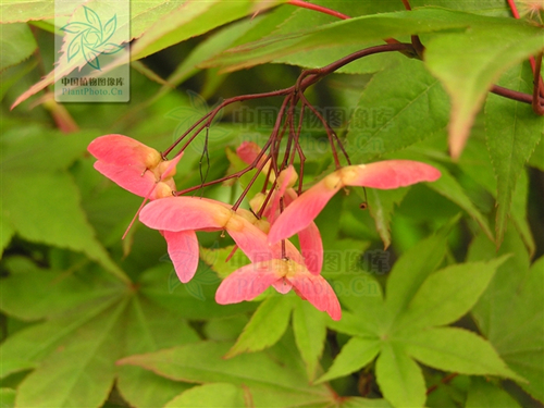 果实是翅果,两翅成钝角,幼时紫红色,熟后褐黄色,果核球形,脉纹显著。