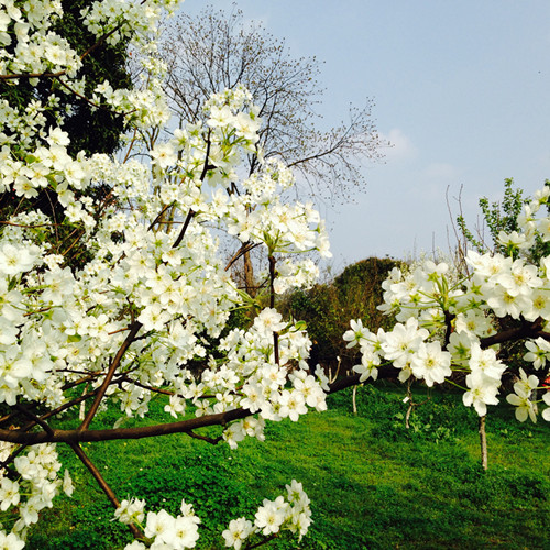 目前,部分梨花和李花也已经开放,呈梨李争芳之态,它们的花瓣白如凝脂,花朵晶莹似美玉,满径香雪,素雅又不失清丽,浪漫至极。
