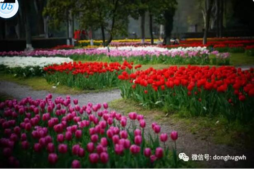 郁金香观赏区内,60万株郁金香尽数开放,浪漫的郁金香花田花带花林尽显,放眼望去,色彩缤纷多变的郁金香已经将大地装扮的五彩斑斓。在湖畔花田,10万株红、黄、橙、紫各色郁金香打造的浪漫花田已经怒放,从空中望去,如彩练绵延铺陈,美不胜收。