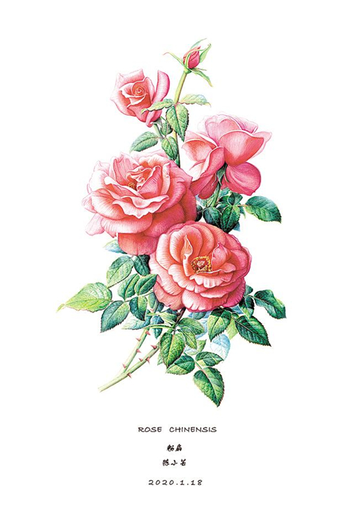 “在我看来,植物科学画的科学性首先表现在物种在大自然中的真实存在,其次是绘画过程中的比例和结构、色彩和细节处理都要尽量准确;而艺术性则是在空间、层次和构图,色彩与质感的表达上给人以美感。不是单一的艺术或者科学制图,二者的完美融合才能创作出一幅完整的植物科学画。”这是张磊的创作心得。