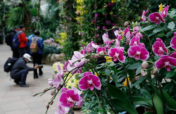 在武汉植物园,热带兰花、郁金香等各色花卉将园区装扮一新。春节前夕,武汉植物园推出热带兰展,“兰花之王”卡特兰、“兰花王后”蝴蝶兰、韩国大花蕙兰、泰国石斛兰等8000株热带兰汇聚一堂,色彩绚丽的热带兰花与绿意盎然的热带植物交相辉映,一派生机勃勃的景象。