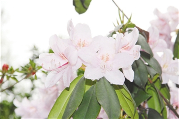 杜鹃花色艳丽,武汉植物园的杜鹃除红色、紫色、粉色、白色等单色外,还有绿色杜鹃和复色杜鹃花。从国外引进的绿色杜鹃品种‘绿色光辉’,花朵小巧玲珑,色如碧玉,十分罕见。复色杜鹃‘皇冠’花朵白粉相间,粉红色镶边,素雅又不失颜色,一扫杜鹃的艳丽姿态,既清新又迷人。