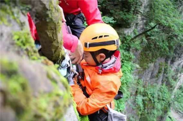 用8字环和高强力绳索作保护,考验营员们的毅力与勇气