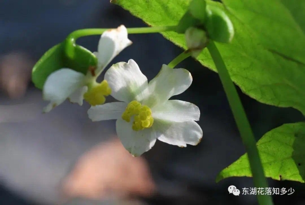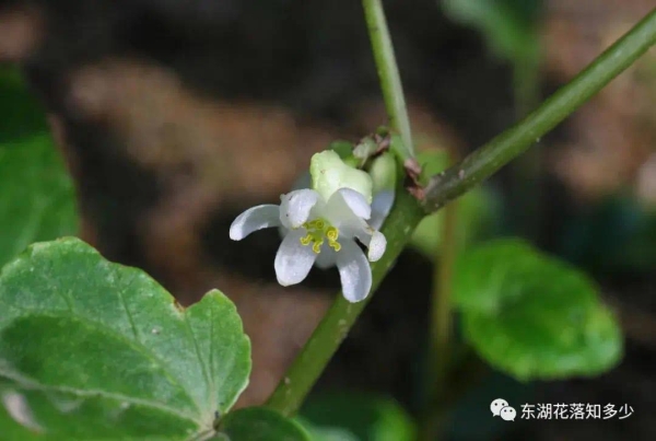 叶柄与叶片是盾状着生的关系,十分特殊,洁白的花看上去非常素雅。