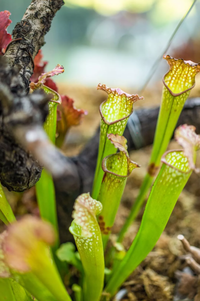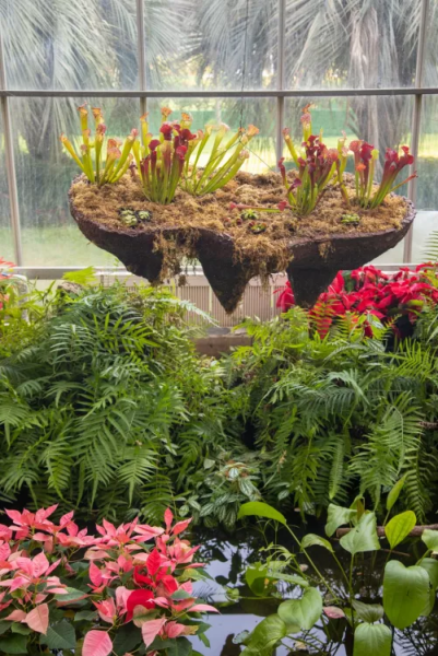 漫步雨林室,捕虫堇、茅膏菜等食虫植物群聚成一个危险又迷人的“食虫王国”。