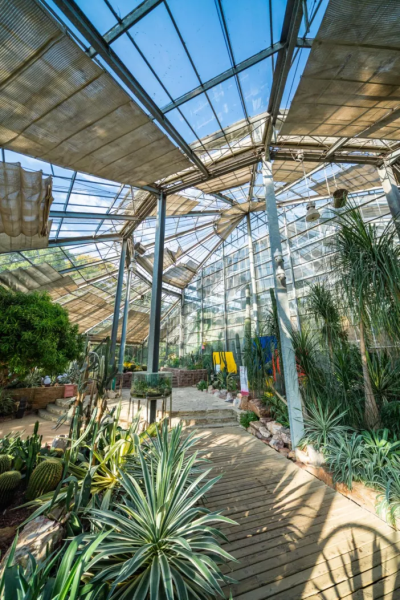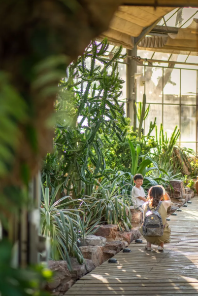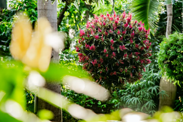 “天空之境”展区位于园区景观温室,分为雨林室与兰花室两个区域,主要通过垂吊花卉、植物微景观等方式,为温室增加趣味和层次感,给游人以新奇的观赏体验。