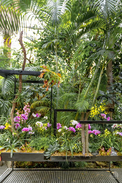 植物园温室内还原热带生态,打造出一片兰花的专属天地。从天空抛来「橄榄枝」,各种藤蔓缠绕在一起,3米高的兰花拱门视觉冲击力极强。