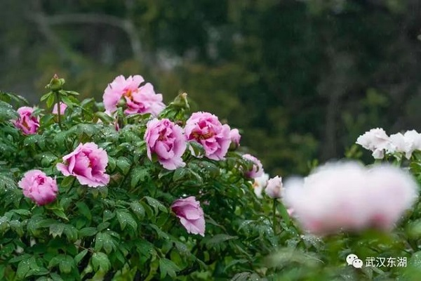 洛阳牡丹来东湖过年啦!春节期间,武汉植物园首次推出催花牡丹展,展览运用中式园林造景方式,通过园林式框景手法打造国风沉浸式牡丹展。