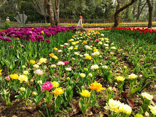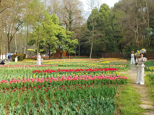 目前,郁金香已经开放近半,进入最佳观赏期,花展将持续至4月上旬。