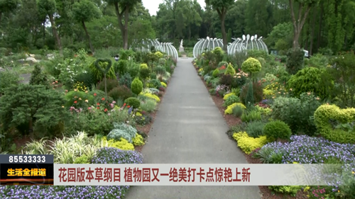 “药园花境和其他花镜是不一样的,其他的花境可能说只要照顾它的美观,乔观草随便搭配就可以。在这个药园花境,我们选用的植物70%是有药用价值的,像这些乔木型的松树柏类,包括那边的枸杞、布置的一些草本,都是具有一定的药用功效的。”