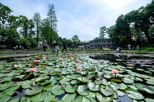 清风吹醒花中睡美人,如梦似幻的睡莲季来了。印度红睡莲、埃及蓝睡莲、墨西哥黄睡莲、中国延药睡莲、泰国招财女神……武汉植物园睡莲展示区收集了世界各地的睡莲名品。仿造睡莲花瓣建造成的“八色睡莲池”已经上色完毕,紫、蓝、黄、粉、红,色彩大胆绚烂,如意蕴流淌的艺术家画作。