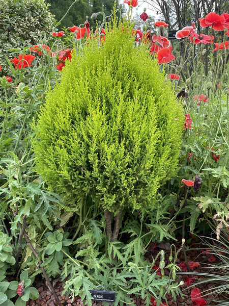 形似火苗的香冠柏,心型川滇白蜡,一棵棵“棒棒糖”状的亮金女贞,像蓬头洋娃娃的金柳杉,一番精心造型后,也让你记住了它们的姓名。“还有龙枣,枝干自凹造型。”植物的骨感美,徐文斌建议大家莫错过。