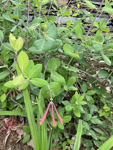 植物园本草园:贯月忍冬(金银花),自带两种叶形