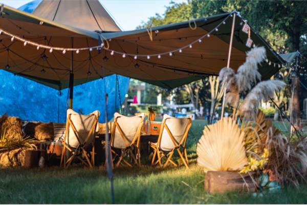 目前营地拥有3个大型尖顶帐篷和4个天幕,可同时容纳80人就坐。营地后期会将露天电影、户外潮流运动、森林音乐会、沉浸式剧游融入营地场景之中,提供多方面的极致文化体验。