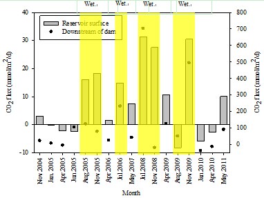 淡水生态系统包括河流、湖泊及水库的水-气界面的碳释放是全球碳循环的重要组成部分,且在全球陆地生态系统碳平衡评估中发挥重要的作用。在全球及区域尺度上,发电水库的碳释放虽然取得了巨大的进步,典型水库野外观测数据的缺乏正影响区域及全球尺度水库温室气体释放的评估。