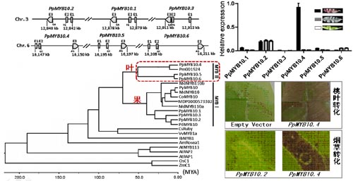 控制桃红叶性状候选基因PpMYB10.4的进化与功能分析