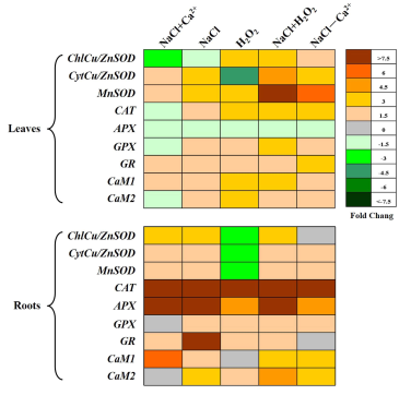 图2. Ca2+和H2O2诱导的相关基因转录水平