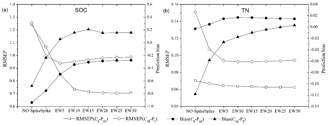 本研究得到国家自然科学基金(31270515, 31470526)和国家重点基础研究发展计划(2014CB954004)的资助,结果以“Estimation of soil organic carbon and total nitrogen in different soil layers using VNIR spectroscopy: Effects of spiking on model applicability”发表在Geoderma 杂志上。