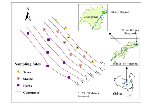 三峡水库消落区忠县植被恢复区采样点设计图