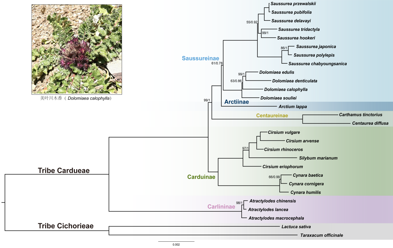 研究论文由王恒昌研究员指导完成,近期以“Plastome Evolution in Dolomiaea (Asteraceae, Cardueae) Using Phylogenomic and Comparative Analyses.”发表在Frontiers in Plant Science。