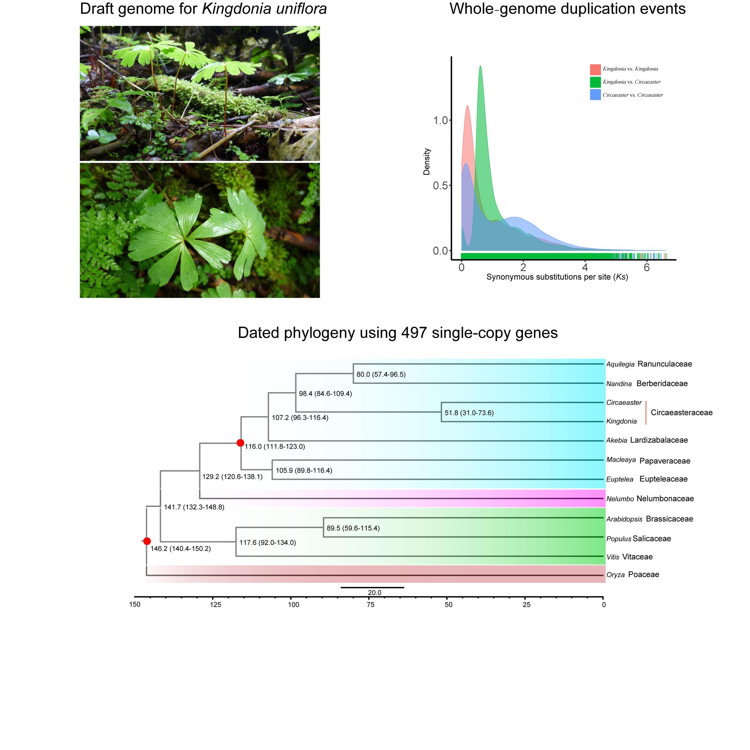 武汉植物园系统与进化学科组长期聚焦川东-鄂西物种多样性研究。为了探讨独叶草的濒危机制,他们联合植物生物信息学学科组,对独叶草的全基因组进行了测定以及组装,获得了大小为1,004.7-Mb的基因组草图,并进行了相关分析。研究发现与DNA修复有关的基因家族在独叶草的基因组中发生了明显扩张,而与环境响应相关的基因家族则发生了明显收缩;结果显示大部分叶绿体ndh基因在独叶草的基因组中发生了丢失。