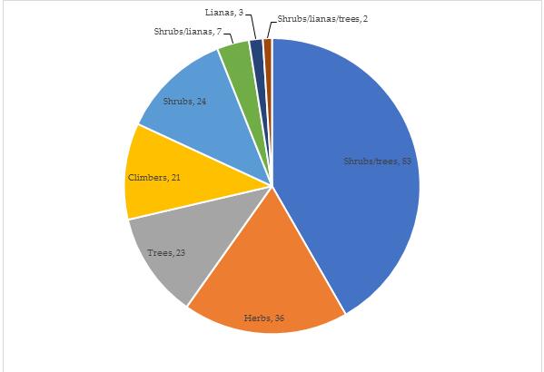 2019年,中非联合调查组基于在肯尼亚Kitui县野外调查期间采集的标本和东非植物标本馆中馆藏的标本,结合该县植物相关的文献报道,对该县的维管植物名录进行整理,最终梳理出一份含931种维管植物的名录。近期,该小组从肯尼亚野生食用植物相关的文献报道及在Kitui县开展的野外调查结果中,整理了该县的野生食用植物名录。调查结果显示,Kitui县共有野生食用植物199种,隶属52科114属,它们具有不同的食用用途,如用作水果、蔬菜、药茶、调味剂、淀粉食品、种子食品、树脂树胶等。研究表明,乔灌木及草本植物是野生食用植物主要的生活型,其中最具代表性的科是豆科和锦葵科。此外,果实和叶子是植物常见的可食用部位,而水果和蔬菜则是Kitui县常见的野生植物食物类型。