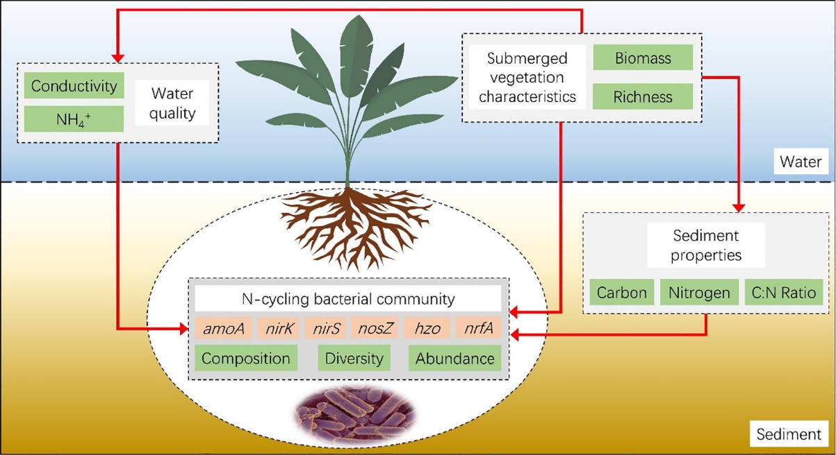 沉积物氮循环细菌是湖泊生态系统生物脱氮最重要的驱动者,是维持湖泊生态系统氮平衡和保障湖泊生态功能的关键类群。沉水植物是湖泊生态系统重要的初级生产者,也是营养盐循环的关键调节者,对湖泊生态系统中的其他组分具有十分重要的调控作用。研究沉水植被对沉积物氮细菌群落的影响结果及作用途径,对揭示植物-微生物相互关系具有重要的指导意义,能够为湖泊生态系统管理与保护提供重要的理论依据。