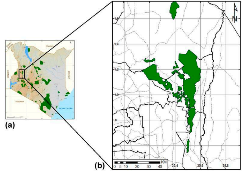 图1. 切兰加尼山区在肯尼亚的地理位置