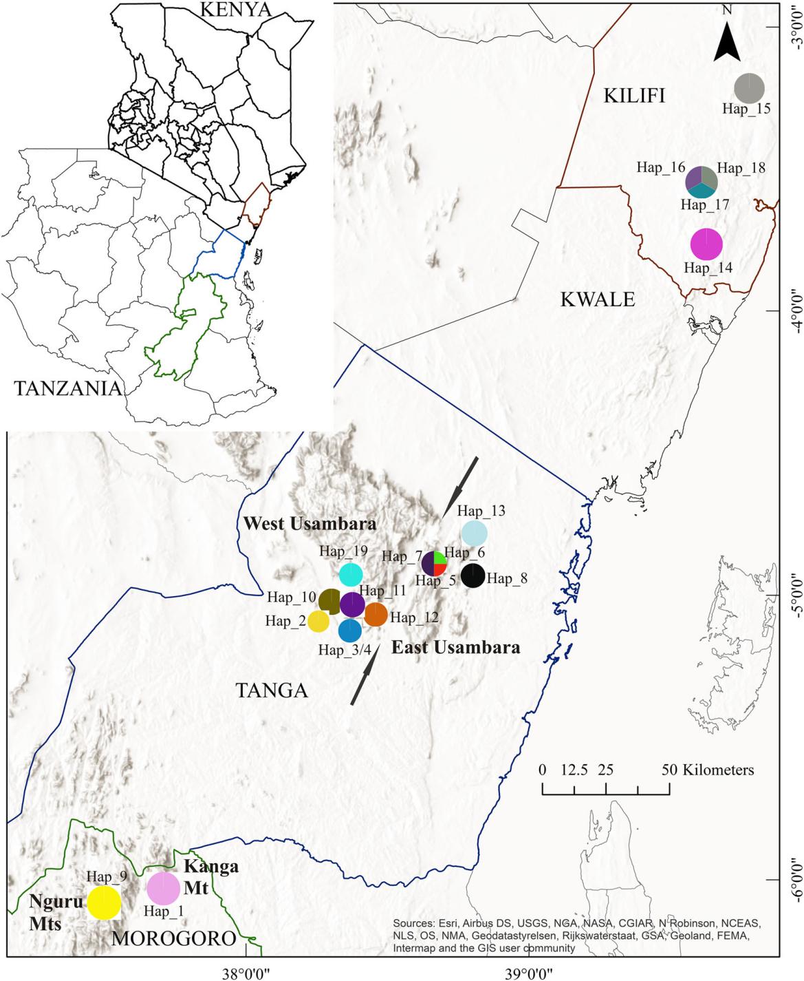 Str. ionanthus分布有三个主要的区域,即:坦噶(Tanga)、莫洛哥罗(Morogoro)和基利菲(Kilifi)。分布于莫洛哥罗(Morogoro)和基利菲(Kilifi)的种群间的隔离明显,与分布在乌萨姆巴拉山的种群不同,乌萨姆巴拉山的种群遗传结构较弱,表明该地区是Str. ionanthus多样性的中心。