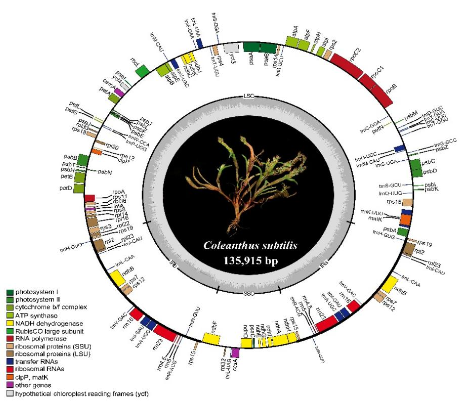 该研究成果以“Comparative and phylogenetic analysis based on the chloroplast genome of Coleanthus subtilis (Tratt.) Seidel, a protected rare species of monotypic genus”为题发表在期刊Frontiers in Plant Science上。武汉植物园与湖南师范大学生命科学学院联合培养硕士研究生任静和武汉植物东非植物区系与分类学科组的田径博士为论文共同第一作者,武汉植物园胡光万研究员和湖南师范大学蔡秀珍副教授为共同通讯作者。研究工作得到国家科技基础资源调查项目(2019FY101800)和国家自然科学基金(31970211)的支持。