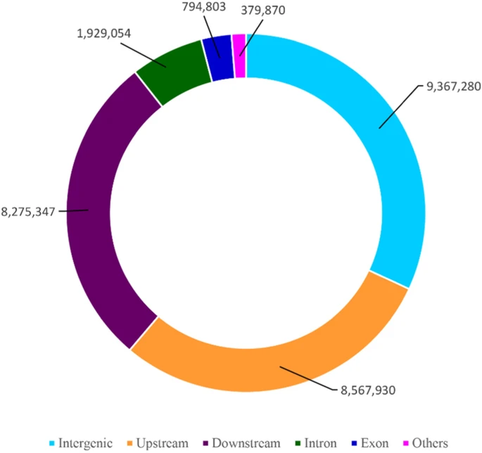 图1 小粒咖啡(Coffea arabica L.)基因组不同区域SNP分布情况