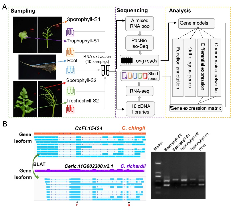 图1 粗梗水蕨的转录组测序数据产生及基因序列鉴定