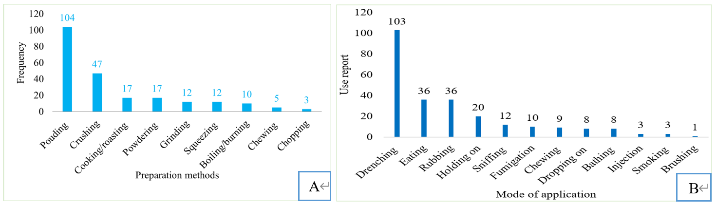 武汉植物园东非植物区系与分类学科组的科研人员,通过半结构式访谈、面对面访谈、小组讨论和实地调查等方式,收集了当地药用植物名称、植物有效部分、植物生境、药剂制备方法、给药途径、治疗疾病类型、是否有复合用途、威胁植物生存的因素和植物可获得性等数据。然后,进行药用植物分类与鉴定,及定量数据指数(信息一致性指数-ICF 和相对引用频率-RFC)计算等分析。