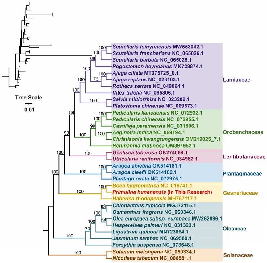 近期,武汉植物园东非植物区系与分类学科组联合湖南师范大学生命科学学院植物分类学研究团队,利用最新的具有超长读长片段优势的三代测序技术(Nanopore),首次完成了湖南报春苣苔完整的线粒体基因组的测序和组装,这是报春苣苔属内的首个、苦苣苔科内的第三个完整线粒体基因组被报道,为植物有限的线粒体基因组数据库作了重要补充。研究分析了湖南报春苣苔线粒体基因组特征,包括基因含量、密码子的使用偏好、重复序列、RNA编辑,并结合唇形目内已公布的线粒体基因组,对比分析系统发育关系、基因组共线性。