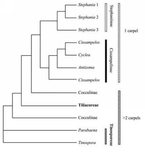 被子植物花的对称性基本包含辐射对称和两侧对称两种形式,其相互转换以及所代表的系统发育和演化方向长期以来是系统与进化植物学研究中的重要课题。千金藤属是真双子叶植物基部核心类群防己科中唯一同时具有辐射对称和两侧对称的植物。研究表明,辐射和两侧对称在系统树上显现为清晰的两支,花部器官的减少和融合导致了辐射对称和两侧对称的转换,花部的简化基本代表了植物演化的方向。