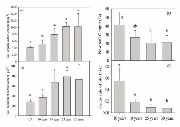 福建长汀红壤侵蚀区森林恢复对土壤有机碳的影响数据分析图